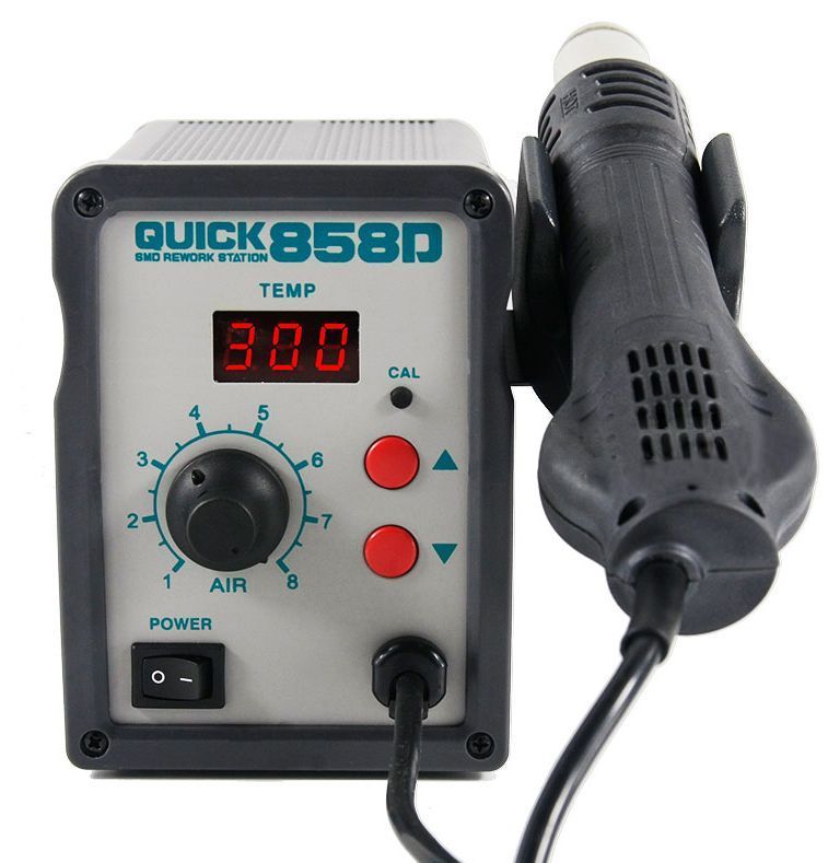 Термовоздушная паяльная станция QUICK 858D предназначена для пайки и демонтажа большинства компонентов поверхностного монтажа: SOIC, CHIP, QFP, PLCC, BGA и т.п.