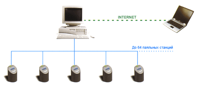 - Подключение к компьютеру одновременно до 64 паяльных станций с протоколированием процесса работы по сети RS485