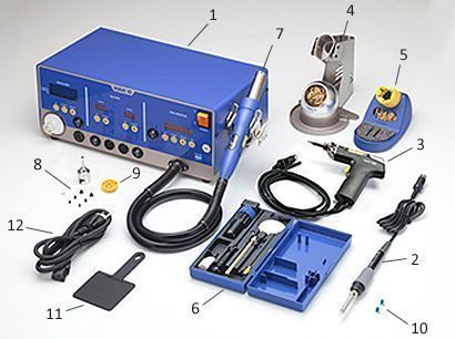 Ремонтная станция HAKKO FR-702 позволяет проводить различные виды паяльных, демонтажных и ремонтных работ, благодаря набору подключаемых инструментов. Помимо демонтажного пистолета мощностью 140 Вт, паяльника типа M и термофена большой мощности (670 Вт) с интенсивным воздушным потоком, к станции можно подключить еще 4 инструмента. Наконечник и нагревательный элемент, можно заменить по отдельности, что значительно снижает расходы на компоненты, по сравнению с использованием наконечника композитного типа.