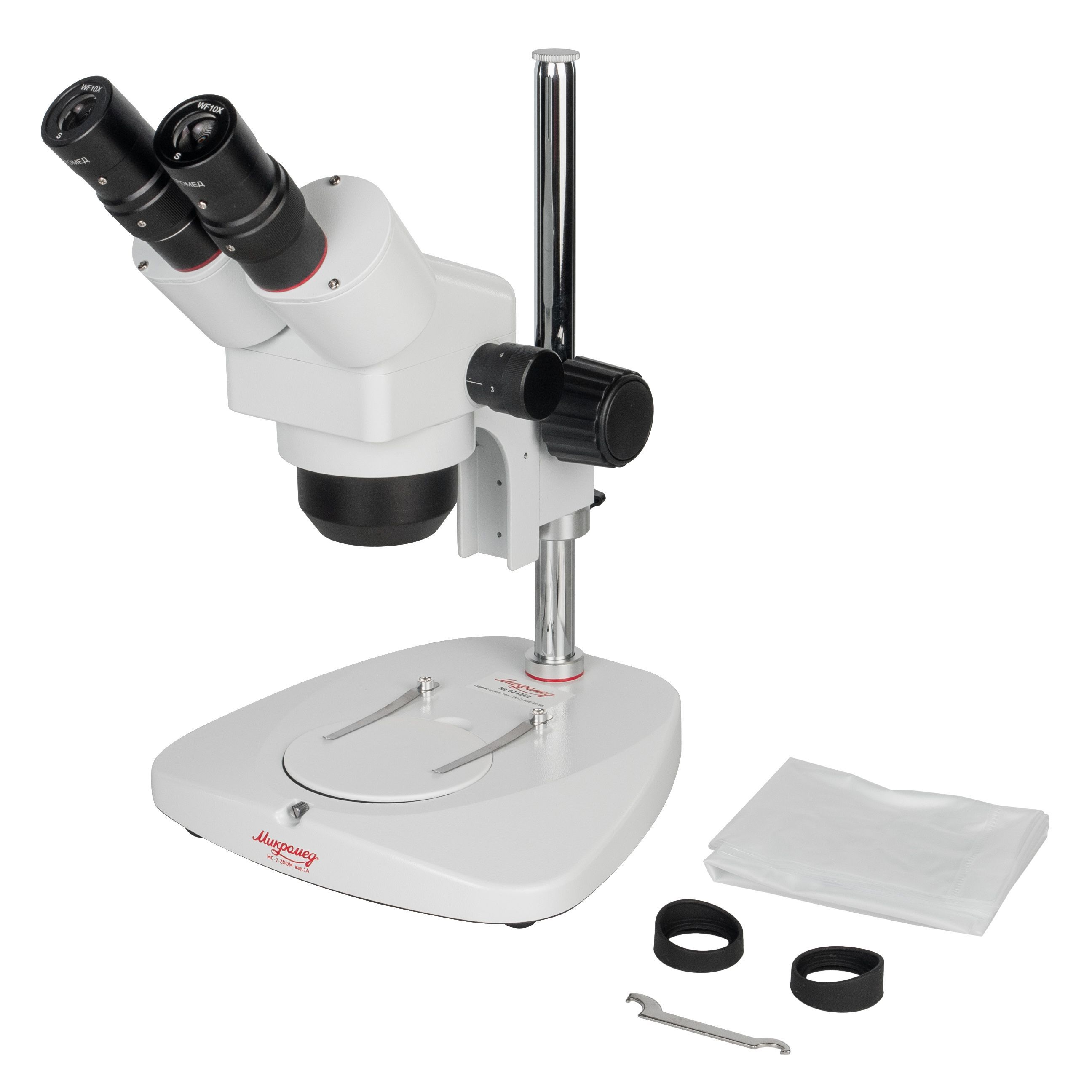 Увеличение микроскопа с окулярами SWF 10х/23, входящими в комплект поставки, составляет от 10х до 40х. Для микроскопа выпускаются окуляры WF 5х/20, WF 15х/15, WF 20х/10. С этими окулярами общий диапазон увеличений микроскопа составит от 5х до 80х. Для микроскопа также доступен окуляр WF10х/22 со шкалой, позволяющий проводить измерение линейных размеров деталей объектов.