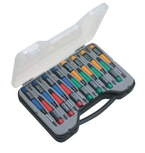 Набор прецизионных отверток ProsKit SW-0118 — профессиональный комплект из 15 инструментов для точных работ с электроникой и мелкими крепежами. Отвертки размещены в удобном пластиковом кейсе для хранения и транспортировки.