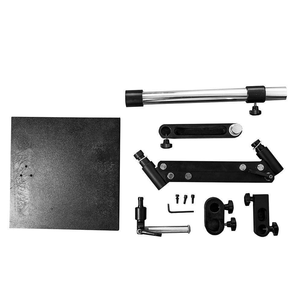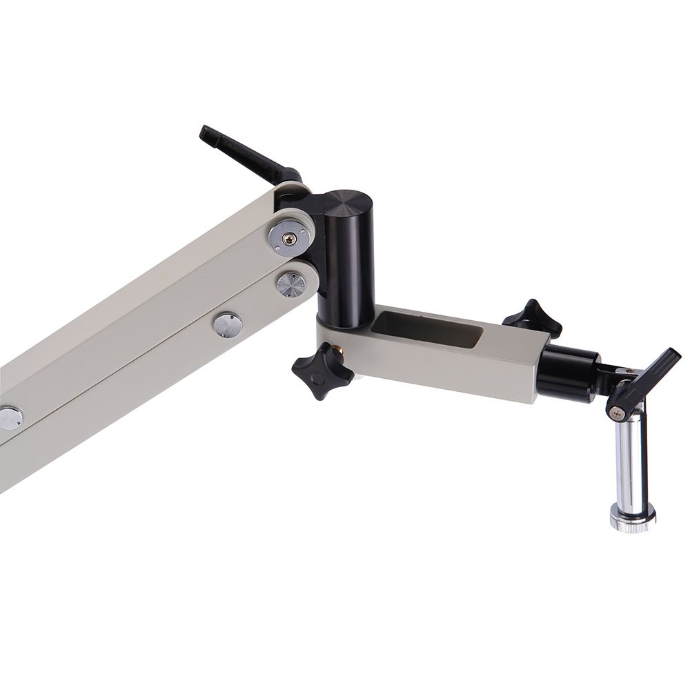 Штатив обеспечивает значительную величину горизонтального выноса головки – расстояние от оптической оси до вертикальной штанги составляет до 950 мм, что позволяет исследовать габаритные объекты и объекты, находящиеся за пределами основания штатива. Значительные величины перемещений достигаются благодаря конструкции штатива с наклонно-поворотной шарнирной руке штатива с пантографом.