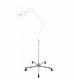 Основание штатива - 5-ти лучевая опора с 5-ю роликами, что позволяет быстро перемещать штатив по полу. Один из роликов оборудован механизмом тормоза, который обеспечивает фиксацию штатива. Эта система позволяет направлять и фиксировать Лупу-лампу 8608 в любом положении на заданном расстоянии от рабочей зоны.