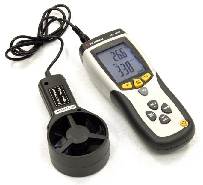 Портативный крыльчатый анемометр, позволяет быстро и точно измерить скорость движения воздушного потока, его температуру и объем воздуха проходящего через сечение воздуховода. Помимо измерения скорости прибор вычисляет объем проходящего через крыльчатку воздуха. Прибор имеет инновационный дизайн корпуса.