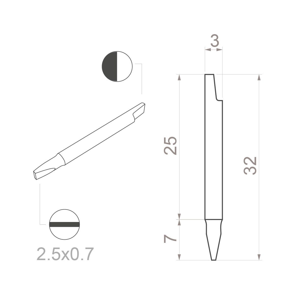 | Размеры лезвия | 2,5×0,7×20 мм |