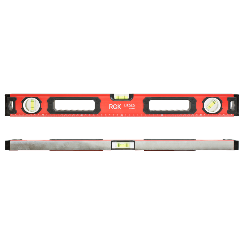 Магнитный уровень RGK U5060 длиной 60 сантиметров оснащен двумя магнитами на противоположных сторонах для крепления уровня на металлической поверхности, чтобы освободить руки при проведении разметки.