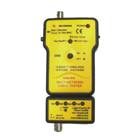АКТАКОМ АСМ-1010 тестер кабельных линий предназначен для тестирования коаксиальных кабелей (BNC), витой пары (UTP) и экранированной витой пары (STP).