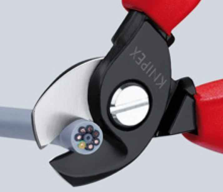 KNIPEX KN-9522165 кабелерезы предназначены как для удаления защитной изоляции, так и для резки одножильных и многожильных алюминиевых и медных кабелей.
