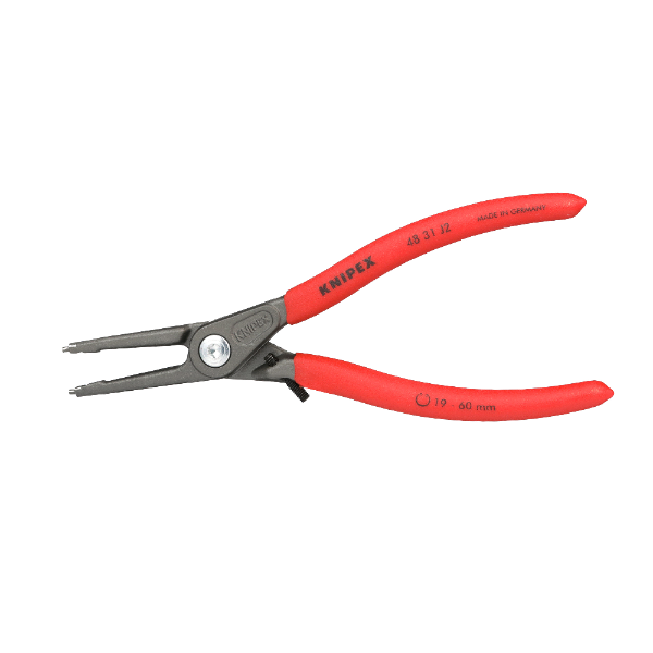 KNIPEX KN-4831J2 щипцы предназначены для монтажа стопорных колец. Эргономичные изогнутые ручки с пластмассовыми чехлами удобно лежат в руке и не скользят.