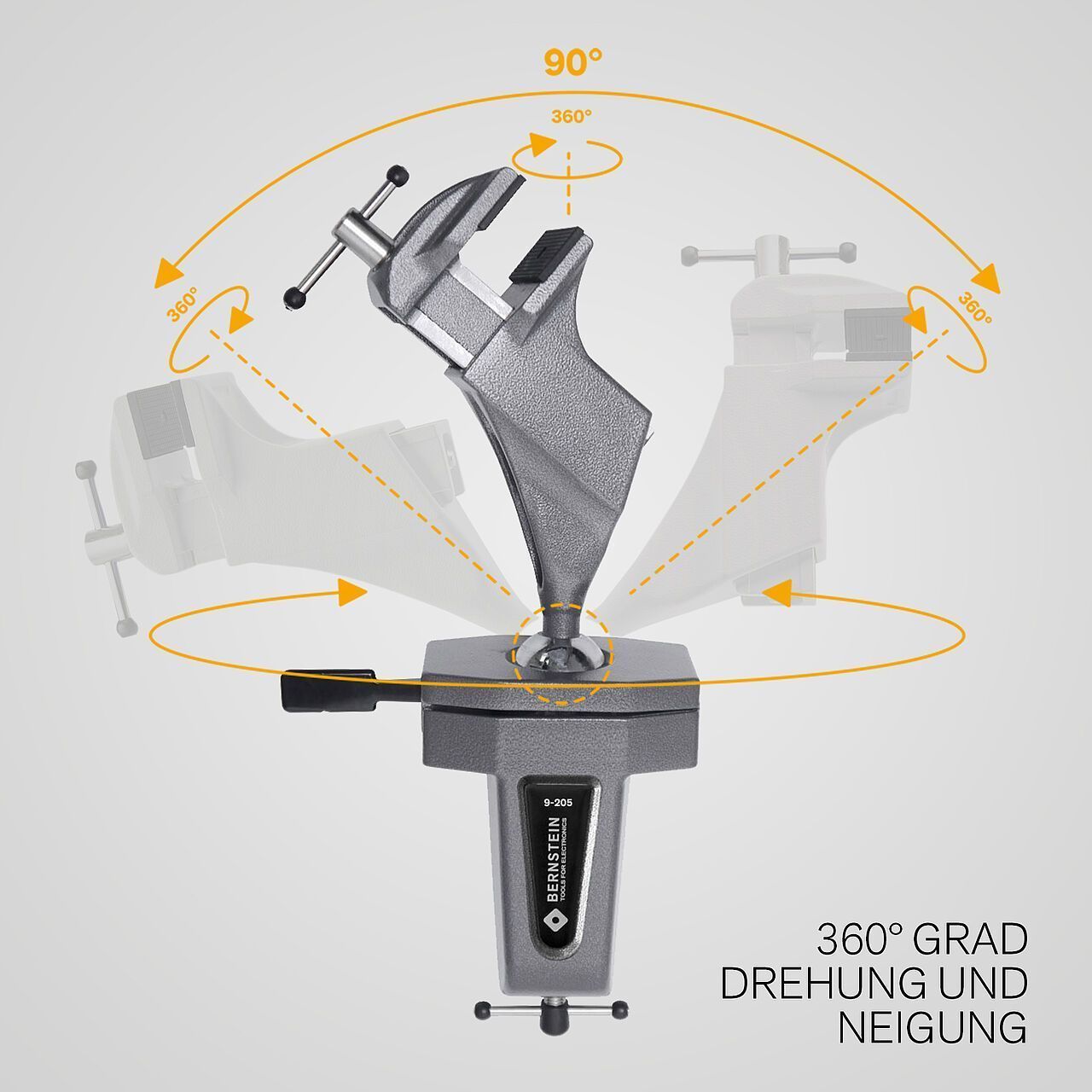 Bernstein B9-205 (SPANNFIX) — это высококачественные тиски с шаровым шарниром, обеспечивающим неограниченные возможности позиционирования заготовки. Инструмент позволяет плавно вращать деталь на 360° и наклонять её на +/- 45°, что создает идеальные условия для эргономичной работы при выполнении прецизионных операций: сверления, пайки, шлифовки и сборки мелких механизмов.