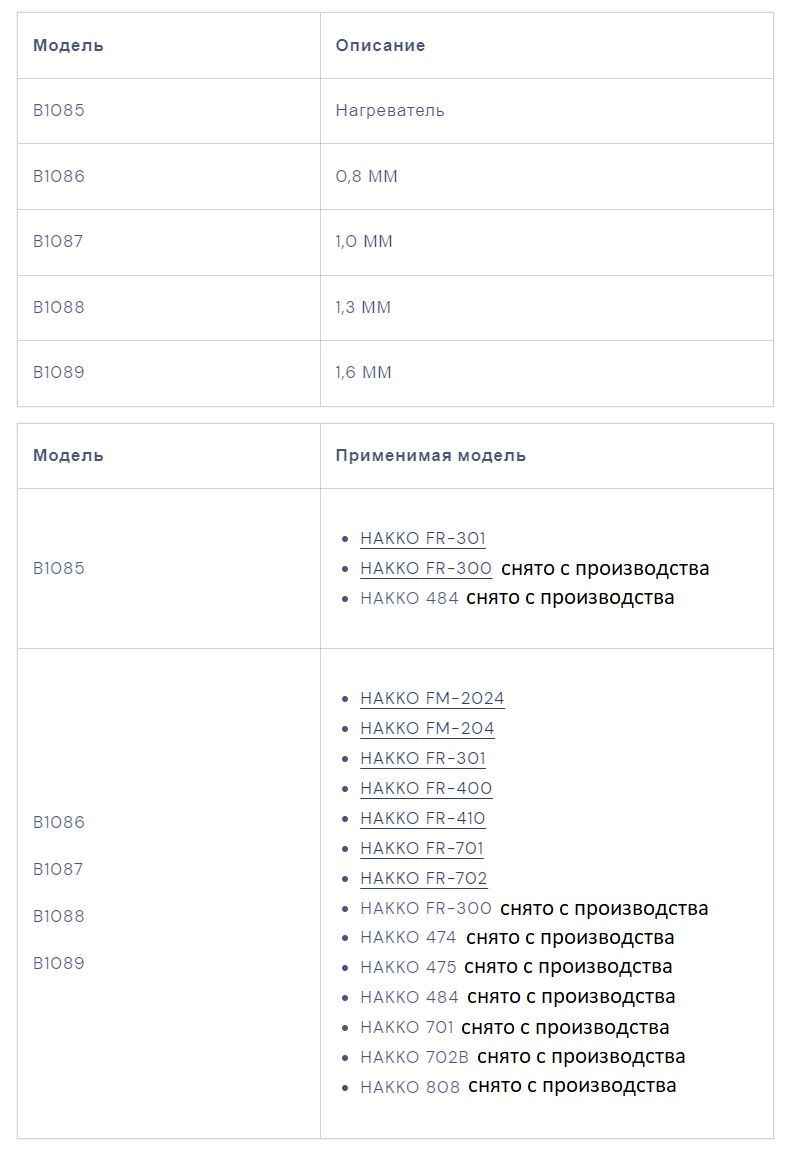 | Совместимость (демонтажные паяльники) | Hakko FM-2024, FR-300, FR-400, FR-410, 484, 808 |