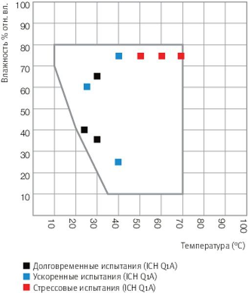 | Флуктуация влажности при 40 °C и 75 % отн. вл. | 1,5 ± % отн. вл. |