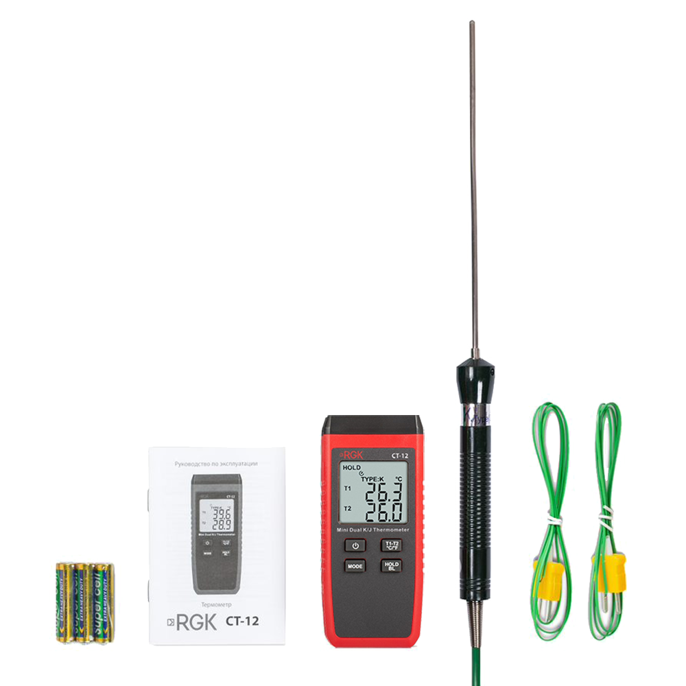 Контактный термометр RGK CT-12 с погружным зондом температуры TR-10W - это надежный и точный прибор для измерения температуры в диапазоне от -40°С до +400°С с комплектной термопарой. Погрешность при этом составляет не более ± 1,5 °C. Главное преимущество этой модели - 2 гнезда для подключения выносных датчиков с функцией определения разности между каналами. Благодаря такой конфигурации можно быстро и удобно решать множество измерительных задач, связанных с диагностикой и настройкой электроники, промышленного оборудования, систем отопления и вентиляции т.п.