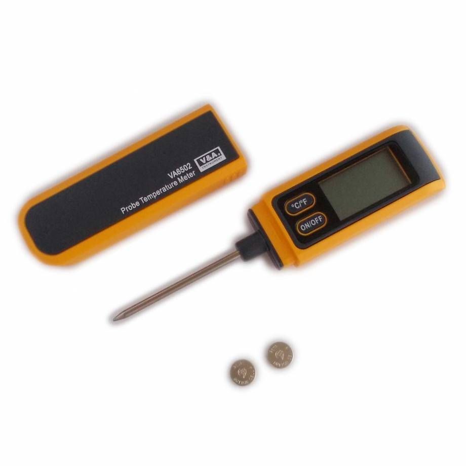 Термометр VA6502 используется для измерения температуры окружающего воздуха. Благодаря своей конструкции прибор прекрасно подходит для быстрого измерения внутренней температуры объектов (жидкостей, мягких материалов и т.п.) путем погружения в них щупа прибора.