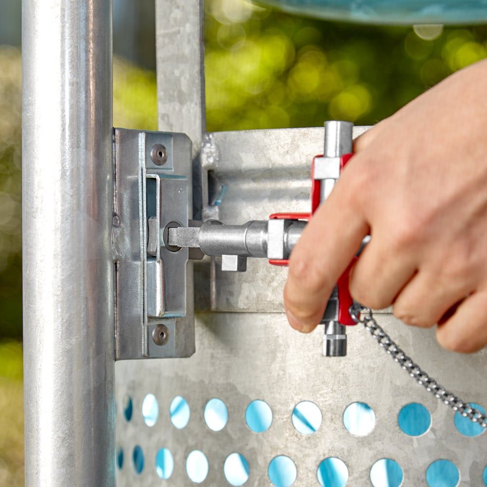 Ключ для электрошкафов KN-001106V01 - это профессиональный ключ, который используется в большинстве систем запирания и применяется для открывания и закрывания встроенных замков и устройств блокировки запирания в электротехнике, в сетях газо- и водоснабжения, в технике вентиляции и кондиционирования, на промышленных производствах. Ключ изготовлен из цинковой отливки под давлением. В комплекте с ключом поставляется съемная цепочка и карабин.