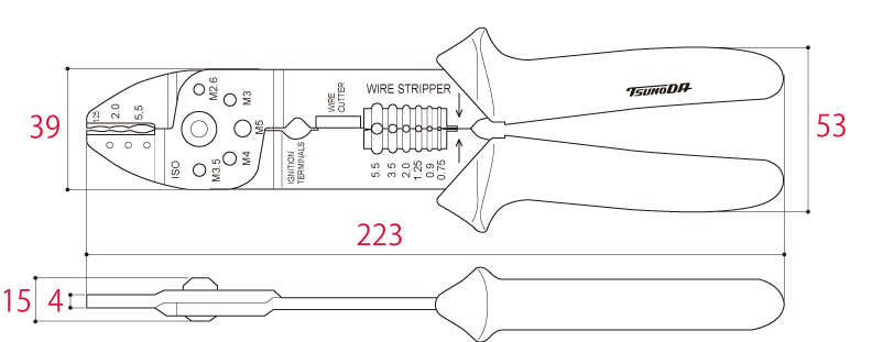 | Снятие изоляции | 0.75 / 0.9 / 1.25 / 2.0 / 3.5 / 5.5 мм² (AWG 18/17/16/14/12/10) |