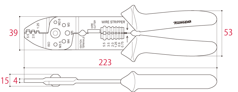 | Снятие изоляции | 0.75 / 0.9 / 1.25 / 2.0 / 3.5 / 5.5 мм² (AWG 18/17/16/14/12/10) |