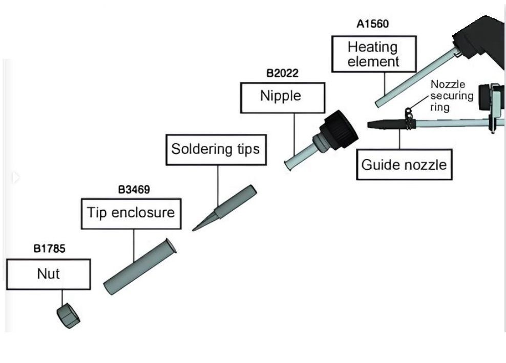 Подходит для припоя диаметром 1 мм. Возможно использование припоя диаметров 0.6, 0.8, 1.2, 1.6 мм (требуется замена подающего наконечника).