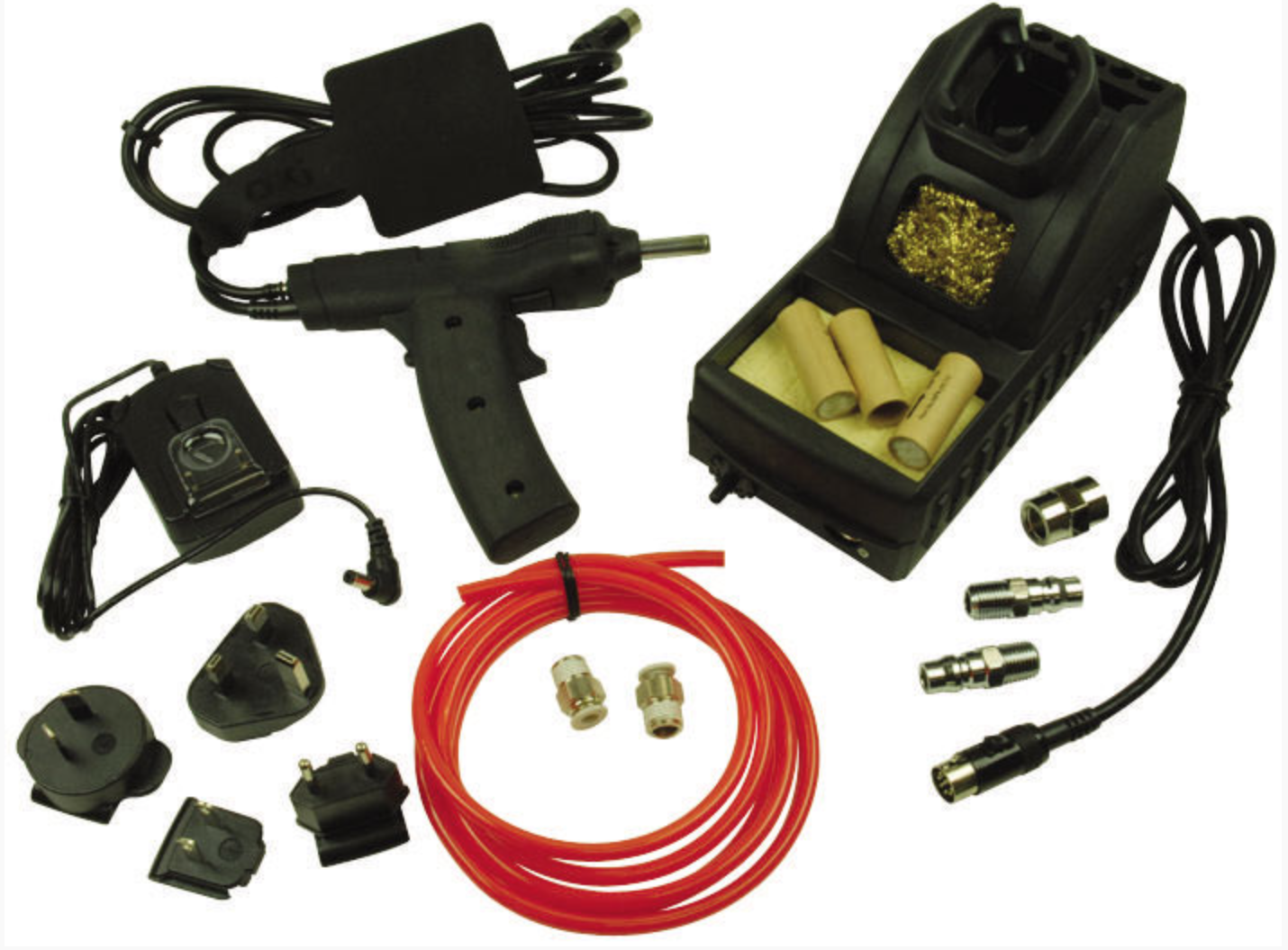 Вакуумный паяльник MFR-H5-DS с подставкой MFR-WSDSX. Для работы со станциями MFR-1100 или MFR-2200 необходим источник сжатого воздуха, например, компрессор.