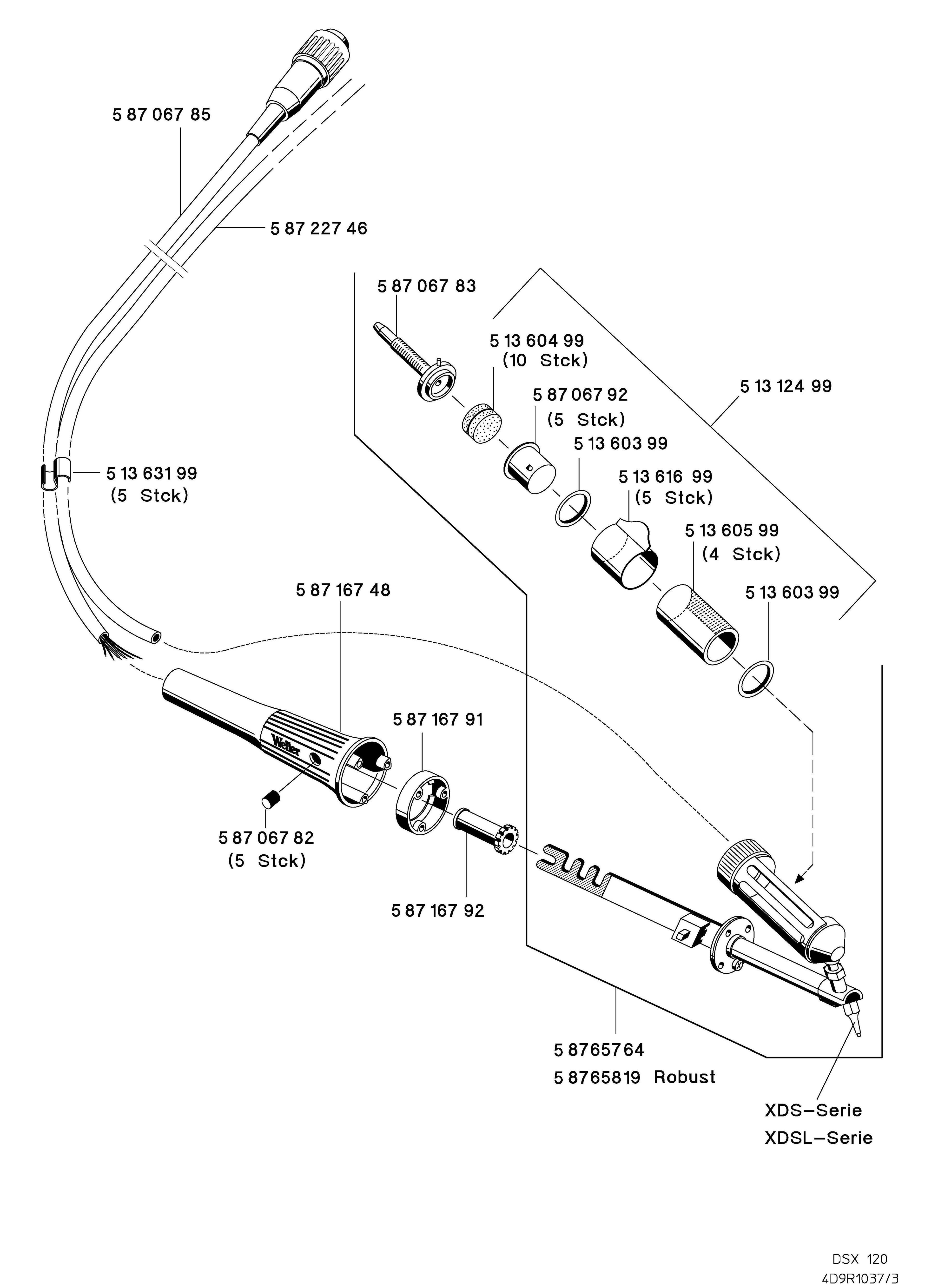 Weller DSX 120 (120 Вт, 24 В). Демонтажный паяльник T0051319899N. Всего 35 секунд времени нагрева, функция сброса. С эксцентриковым креплением.