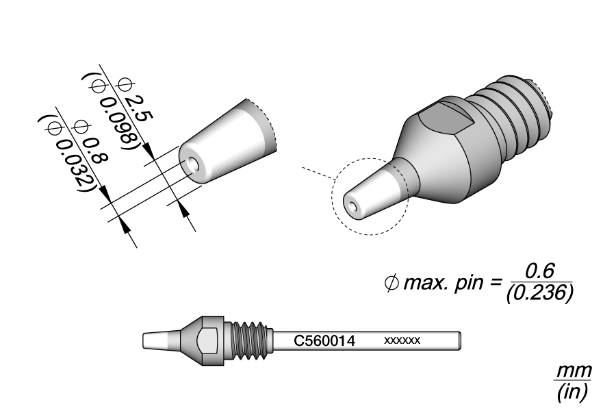 картинка JBC C560014. Жало демонтажное с внутренним каналом ⌀0,8 мм