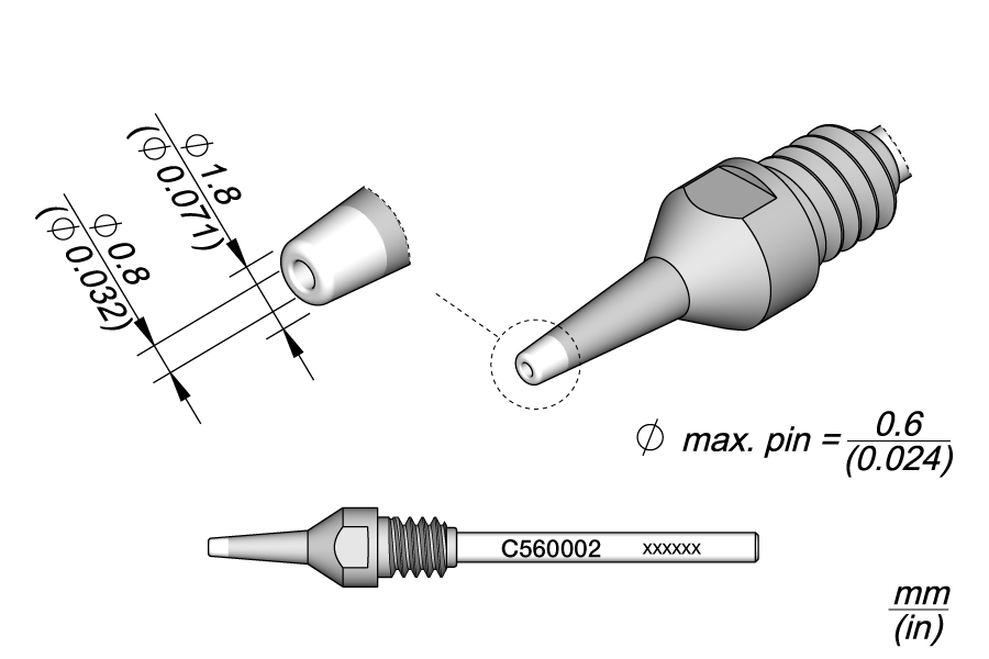 картинка JBC C560002. Жало демонтажное с внутренним каналом ⌀0,8 мм