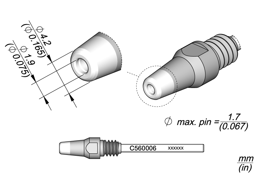 картинка JBC C560006. Жало демонтажное с внутренним каналом ⌀1,9 мм
