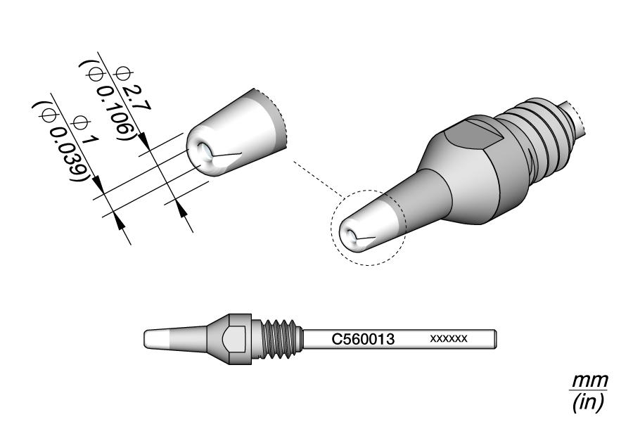 картинка JBC C560013. Жало для очистки контактов с внутренним каналом ⌀1мм