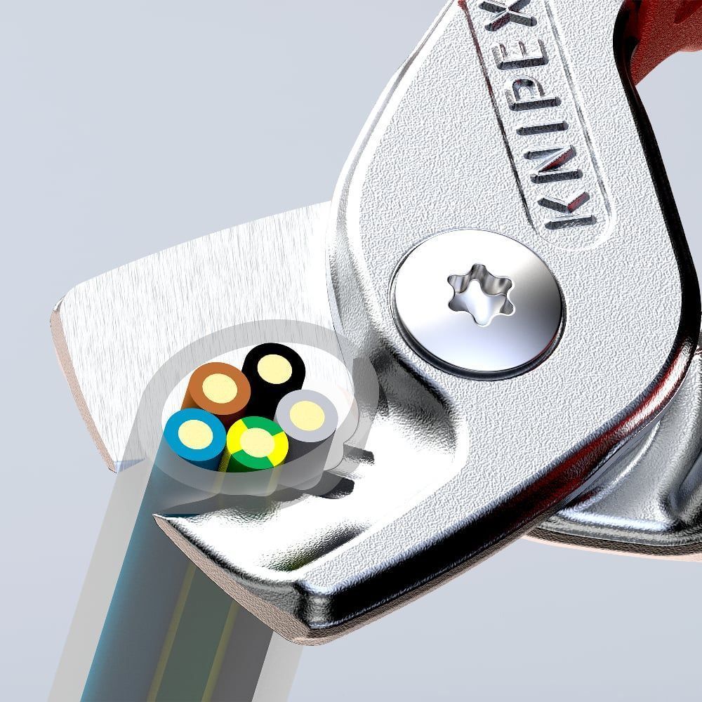 KNIPEX KN-9516160 кабелерезы диэлектрические предназначены как для удаления защитной изоляции, так и для резки одножильных и многожильных алюминиевых и медных кабелей.