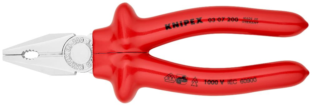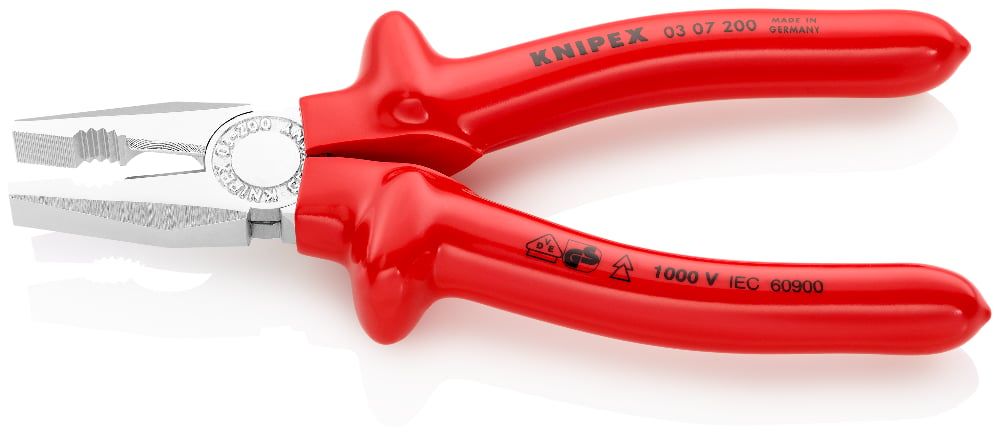 Плоскогубцы KN-0307200 надёжно захватывают, изгибают и вытягивают провода, проволоку и детали любых форм.