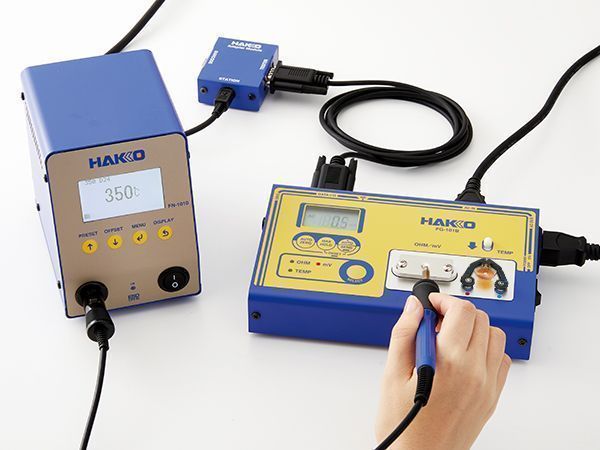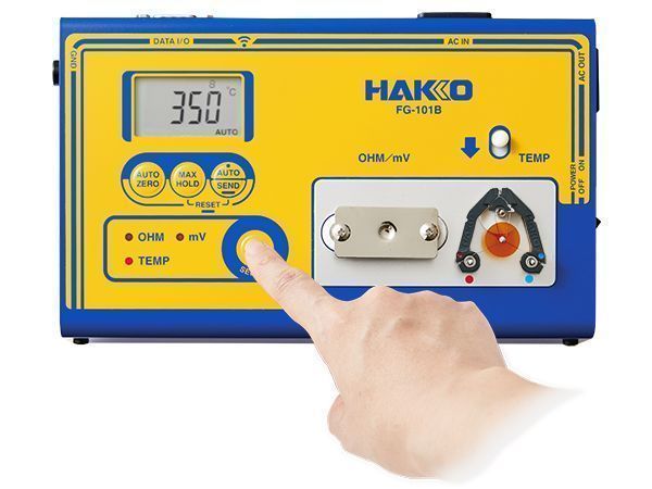 Мультифункциональный контактный термометр Hakko FG-101B с калибровкой и функциями измерения утечки напряжения и сопротивления наконечника заземлению.