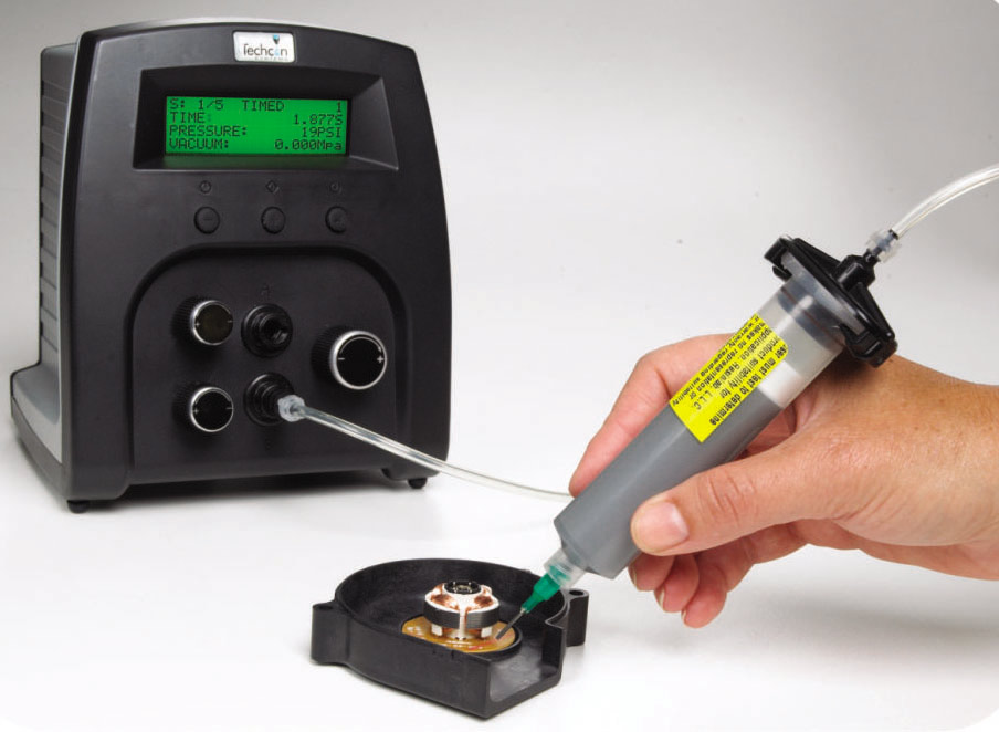 Цифровой пневмодозатор с продвинутым ПО Techcon TS-355. Серия дозаторов TS355 точно и аккуратно дозирует материалы низкой, средней и высокой вязкости. Как и все цифровые дозаторы Techcon, TS355 имеет понятный и простой интерфейс, не требует длительной настройки. Устройство имеет большой ЖК дисплей, отображающий режим работы цифрового таймера и рабочих давлений.