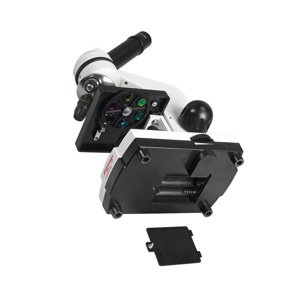 Питание микроскопа производится от 3-х щелочных батареек тип АА, это позволяет исследователю не зависеть от электросети и проводить наблюдения где угодно - в учебном классе, дома, в поездках и на природе.