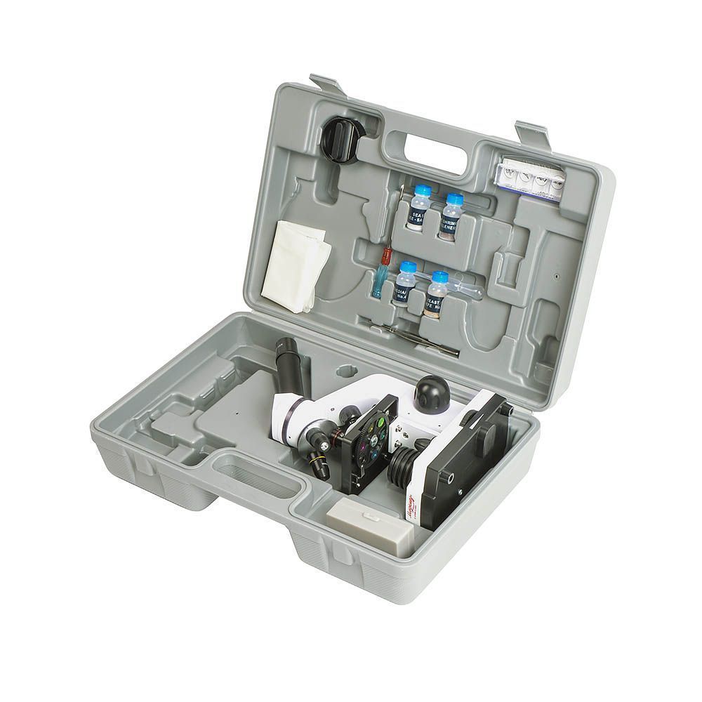 Кейс для переноски и хранения микроскопа входящий в комплект, позволяет безопасно перевозить микроскоп предохраняя его от повреждений, пыли и влаги. Кейс изготовлен из твердого пластика и снабжен мягким уплотнителем с ячейками для микроскопа и принадлежностей. Вес микроскопа в кейсе составляет всего 2 кг.