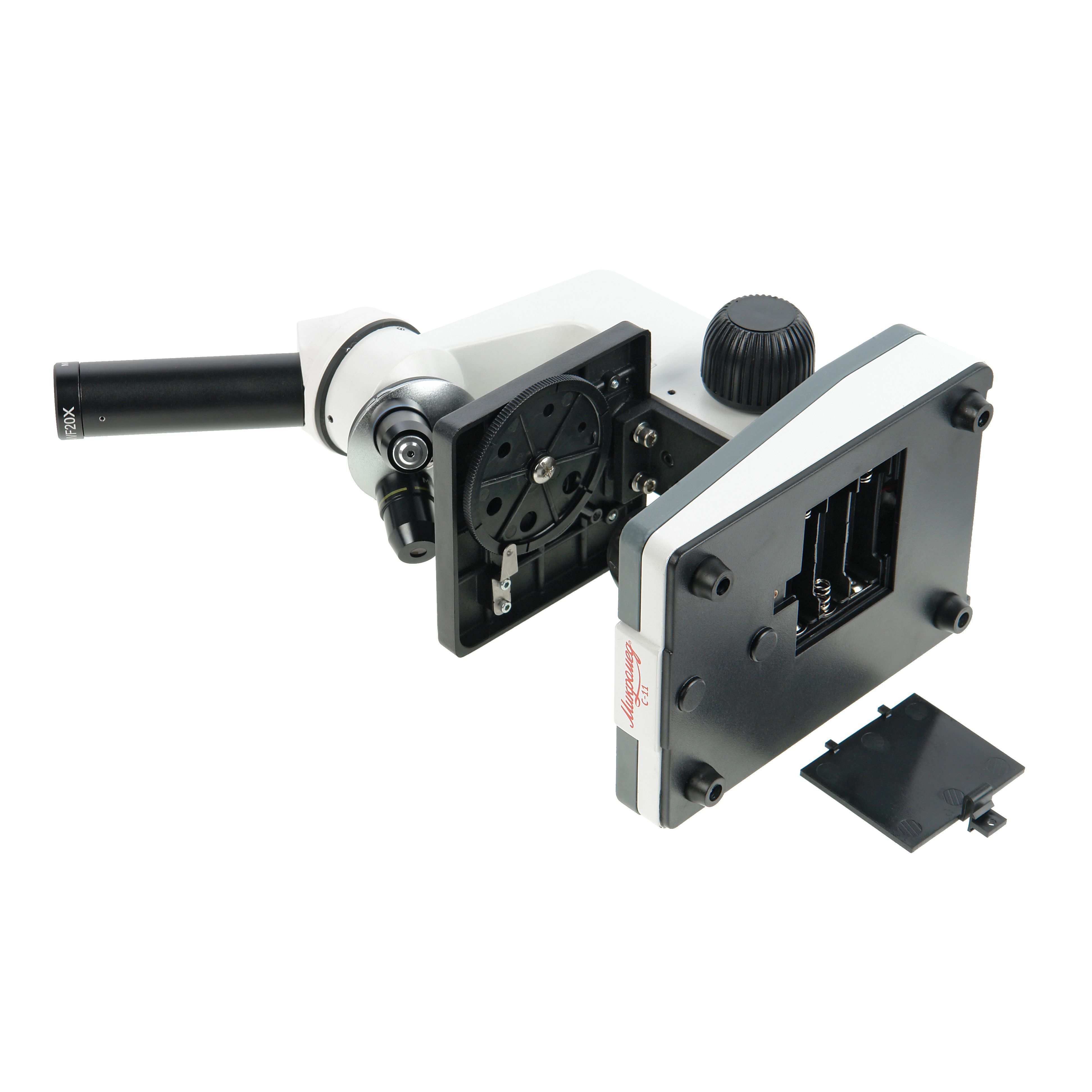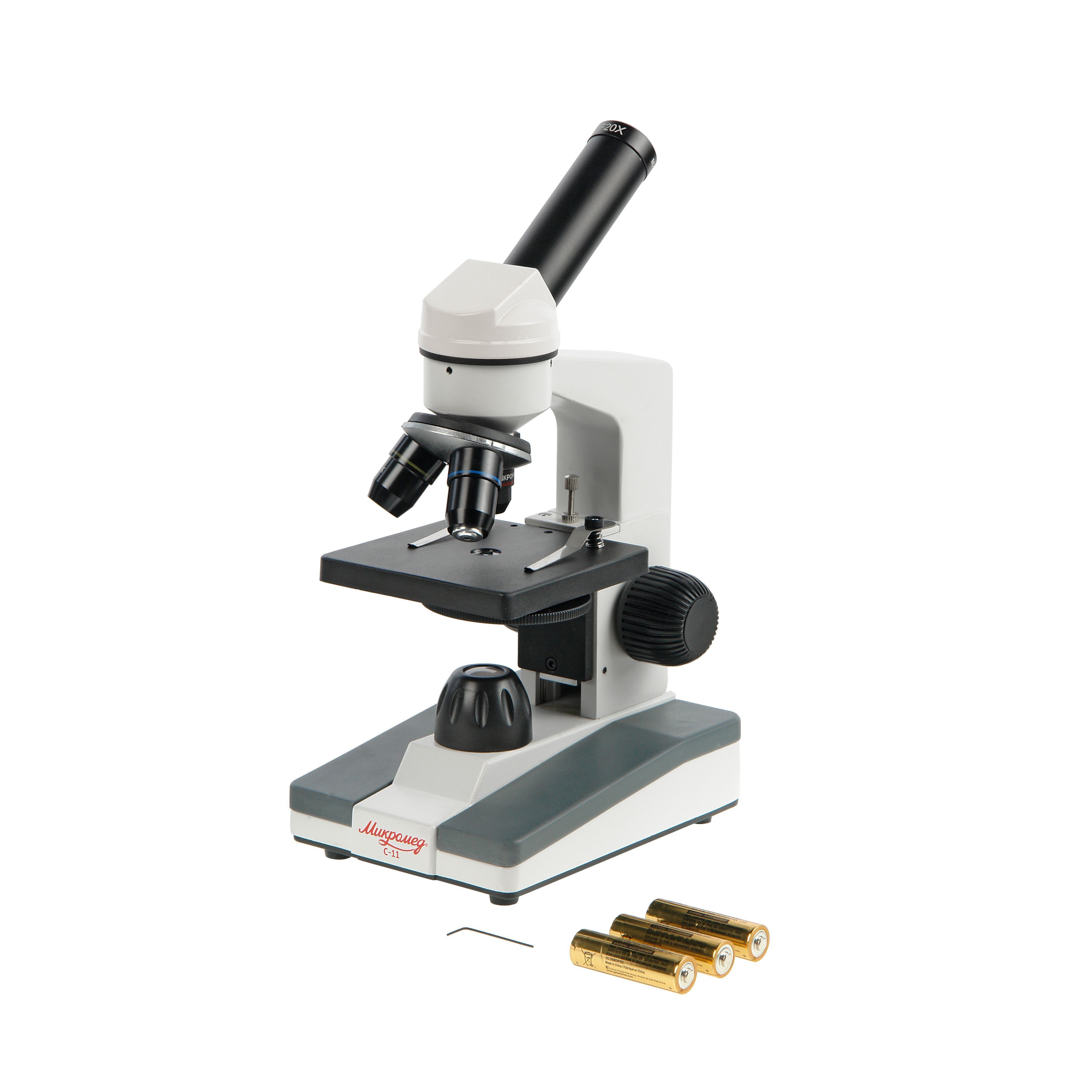 Питание от батареек типа АА позволяет пользоваться микроскопом не только в учебном классе или дома, но и в любых ситуациях, когда электросеть недоступна. Использование дополнительно приобретаемого сетевого адаптера на 5В позволяет подключить осветитель микроскопа к бытовой электросети 220 – 240 В.