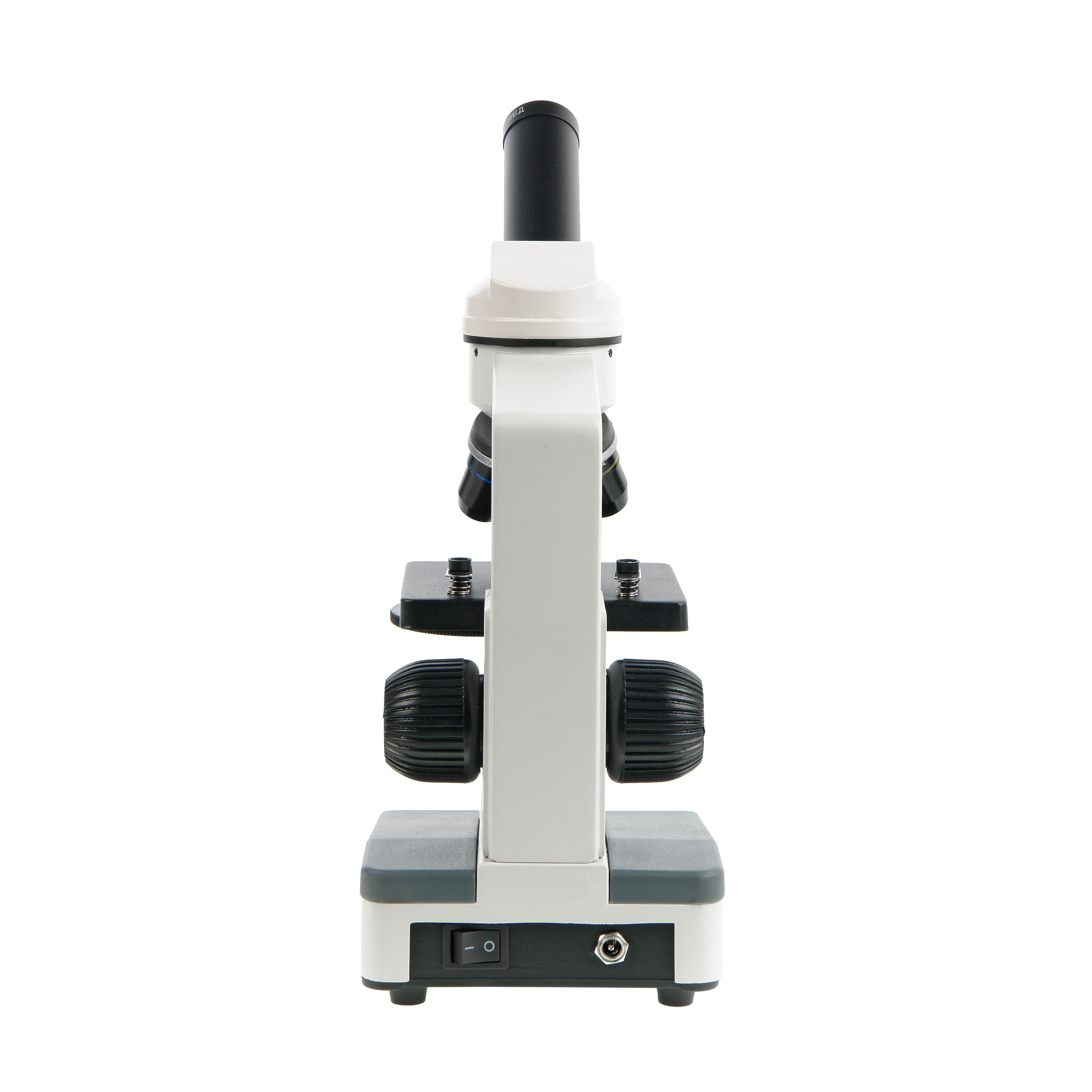Монокулярный биологический микроскоп для исследований в проходящем свете по методу светлого поля. Увеличение 80х - 800х. Объективы с ахроматической коррекцией. Револьверное устройство на 3 объектива. Светодиодный осветитель. Металлическое основание и штатив.
