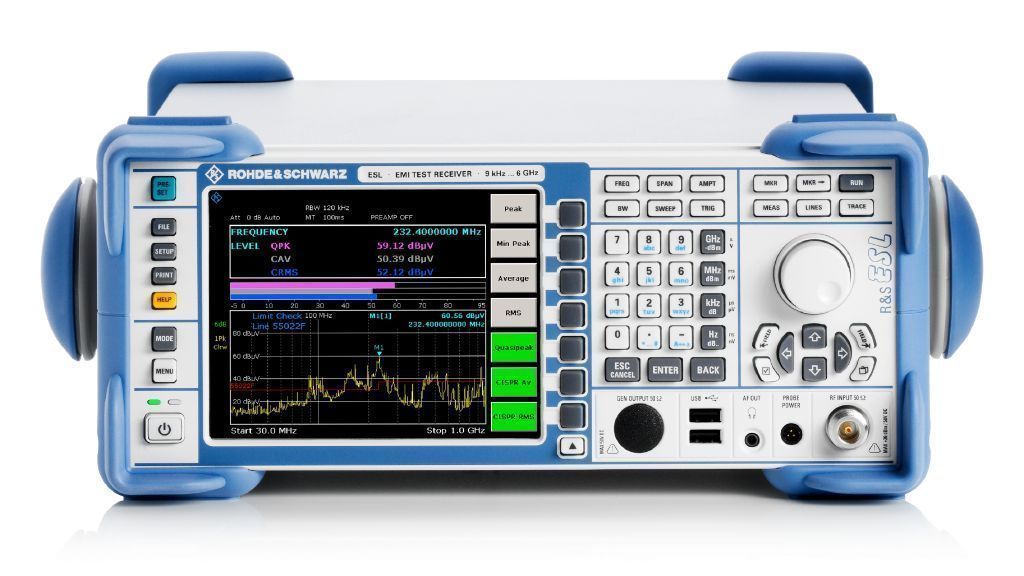 В приборе R&S®ESL объединены тестовый приемник ЭМП и анализатор спектра, что делает его удобным для работы в лаборатории и анализа ЭМП.