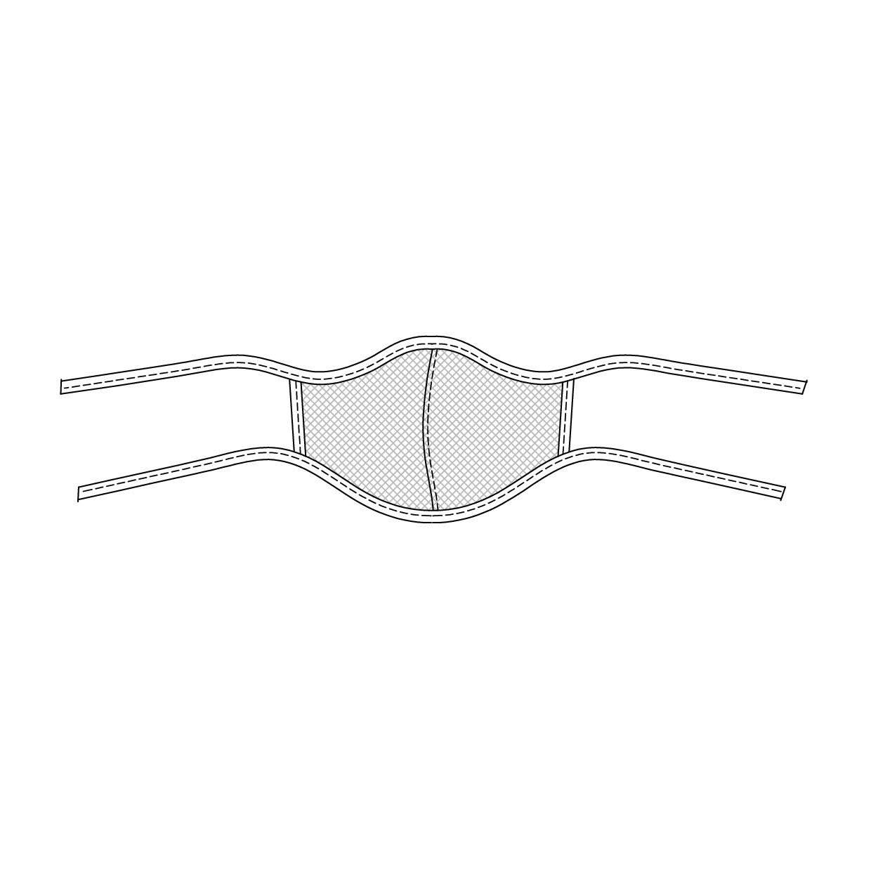 Маска состоит из трёх слоёв фильтра; имеет завязки, фиксирующиеся на затылке, и фиксатор, расположенный на переносице.