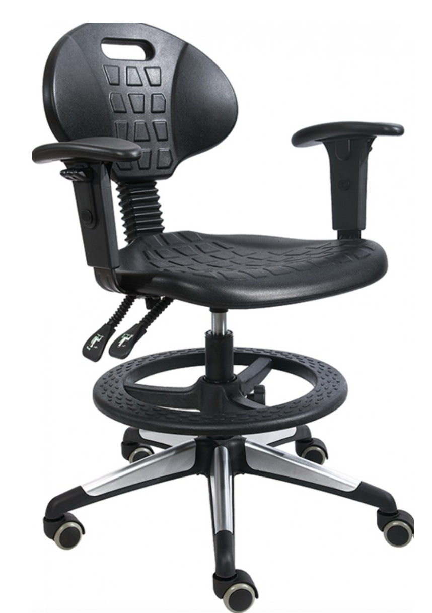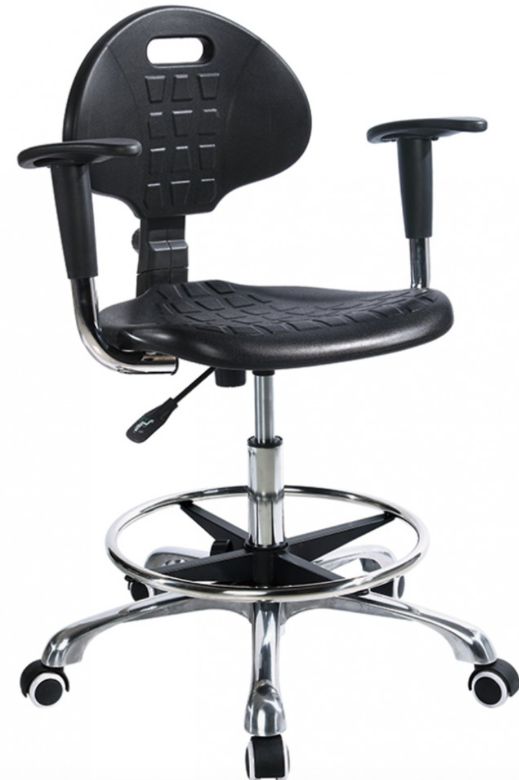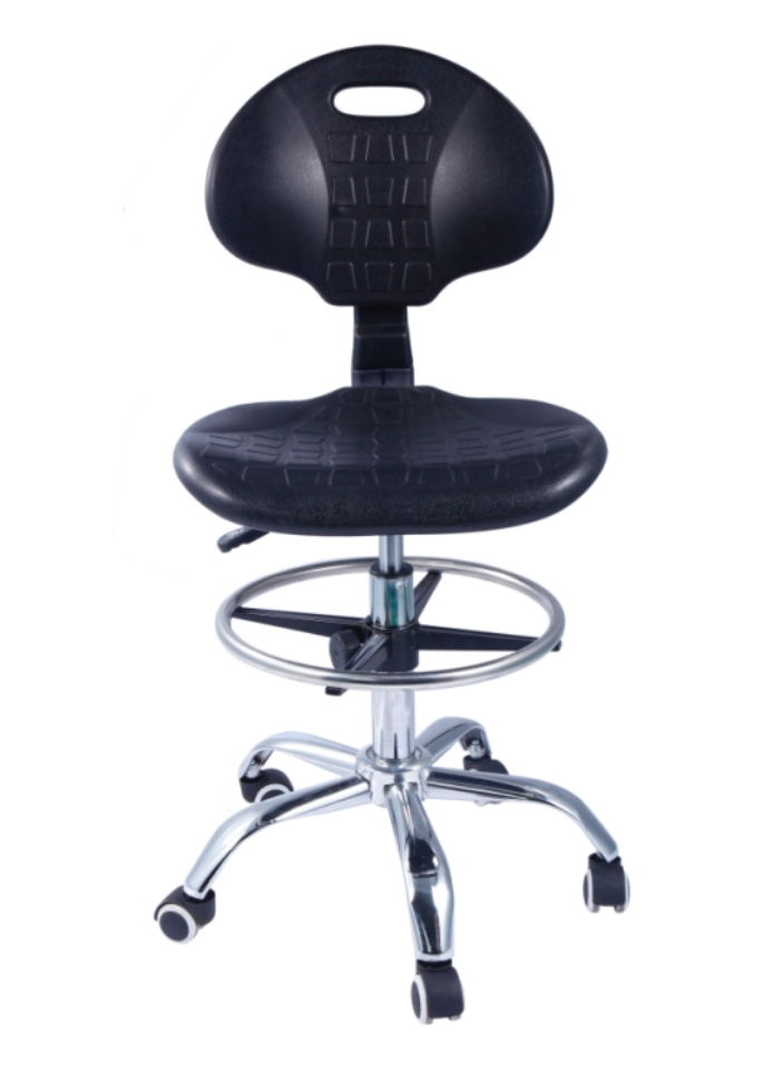 Антистатический лабораторный табурет, негорючий термостойкий токорассеивающий формованный полиуретан. Подходит для использования в чистых помещениях высоких классов чистоты. Соответствует ГОСТ Р 53734.5.1-2009 (МЭК 61340-5-1: 2007).