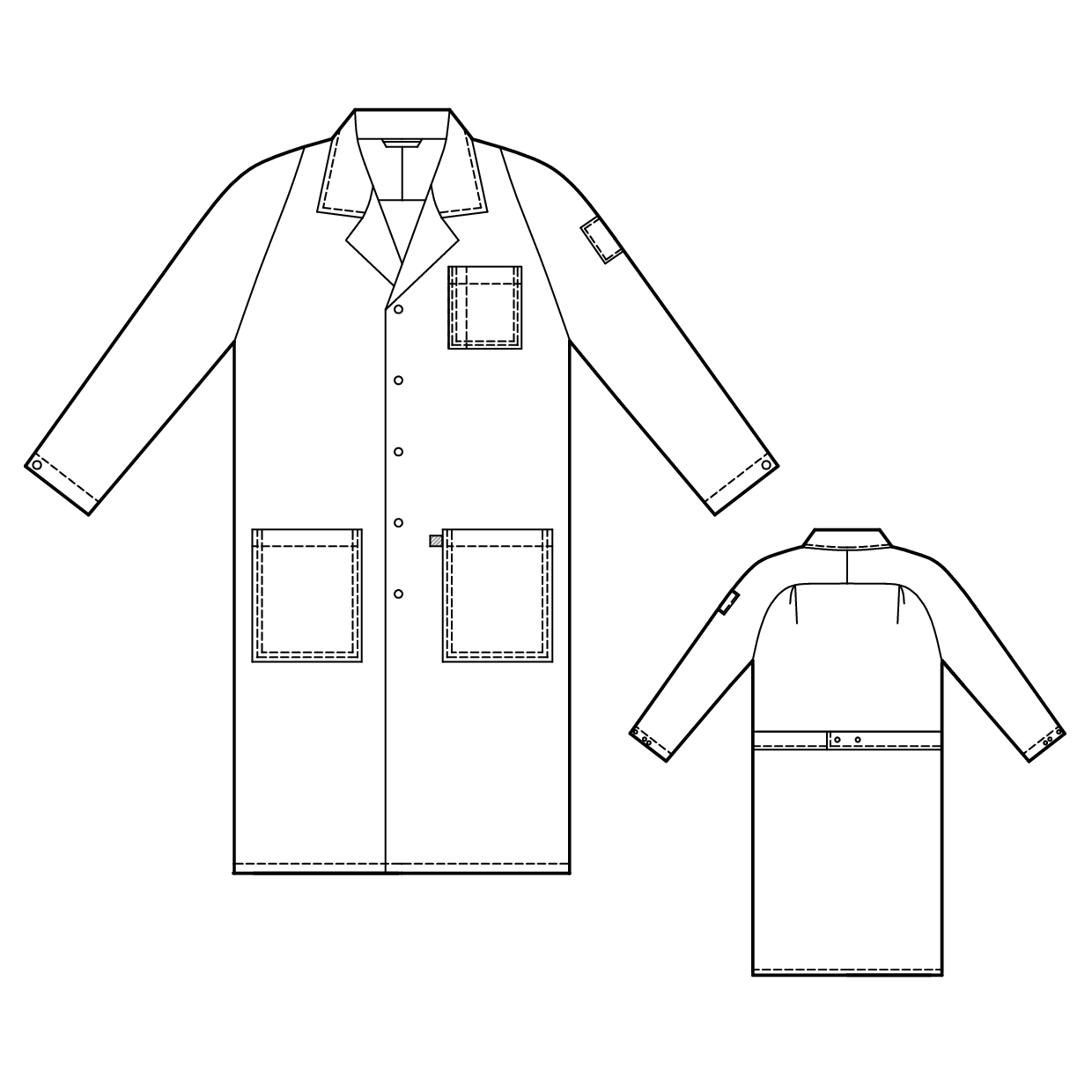 Халат для персонала чистых помещений классов 6 ИСО и ниже может использоваться как технологическая или переходная одежда.
