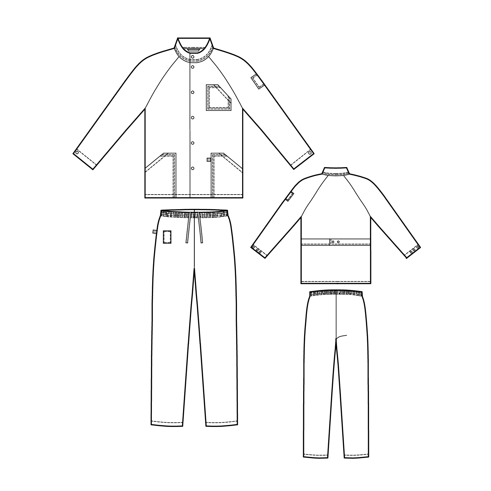Костюм состоит из куртки и брюк.