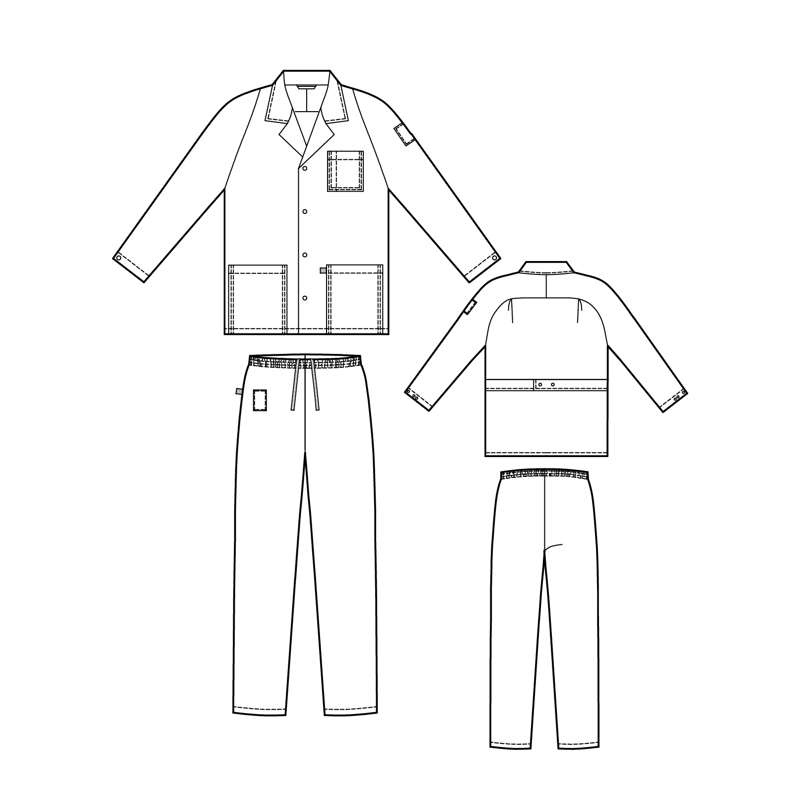 Костюм состоит из куртки и брюк.