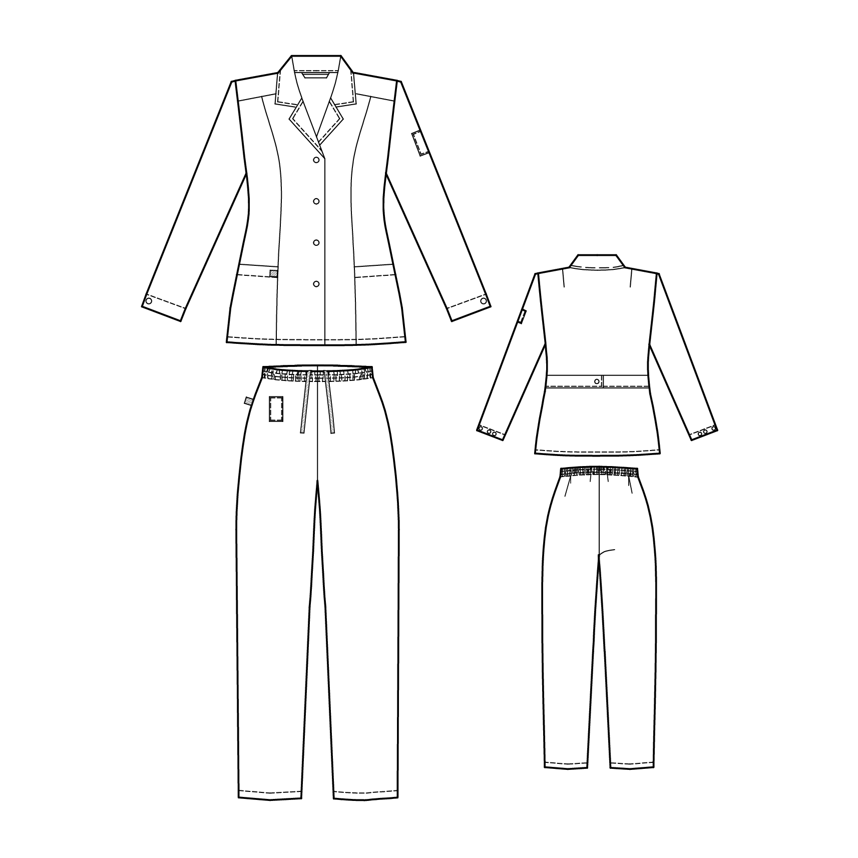 Костюм состоит из куртки и брюк.