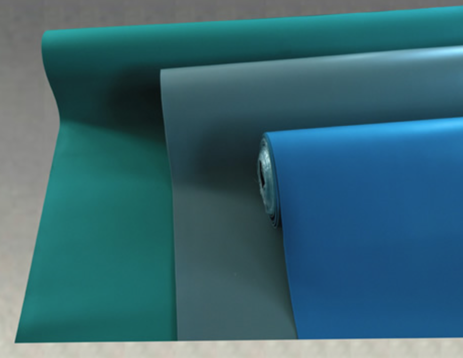 Антистатическое двухслойное резиновое покрытие для столов и полок.