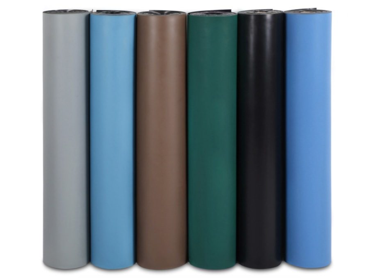Антистатическое двухслойное резиновое покрытие для столов и полок.