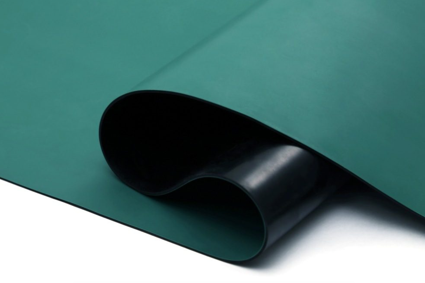 Антистатическое двухслойное резиновое покрытие для столов и полок.