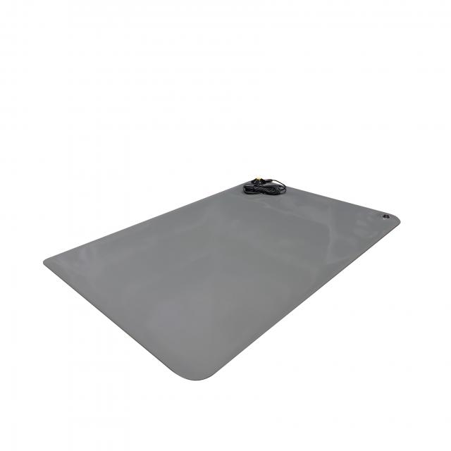 Антистатический коврик изготовлен из 2-х слойного износостойкого высококачественного каучука класса B. Данный каучук отличается отсутствием едкого запаха. Верхний слой токорассеивающий — серого цвета, нижний слой токопроводящий — черного цвета. Настольный антистатический коврик устойчив к кратковременным химическим и температурным нагрузкам и не содержит галогенов. Антистатический коврик не требует специальных условий укладки и может быть использован в качестве покрытия полок стеллажей, ящиков тумб, стоек и тележек. Коврик может быть изготовлен под конкретный размер полок, ящиков и иных поверхностей.