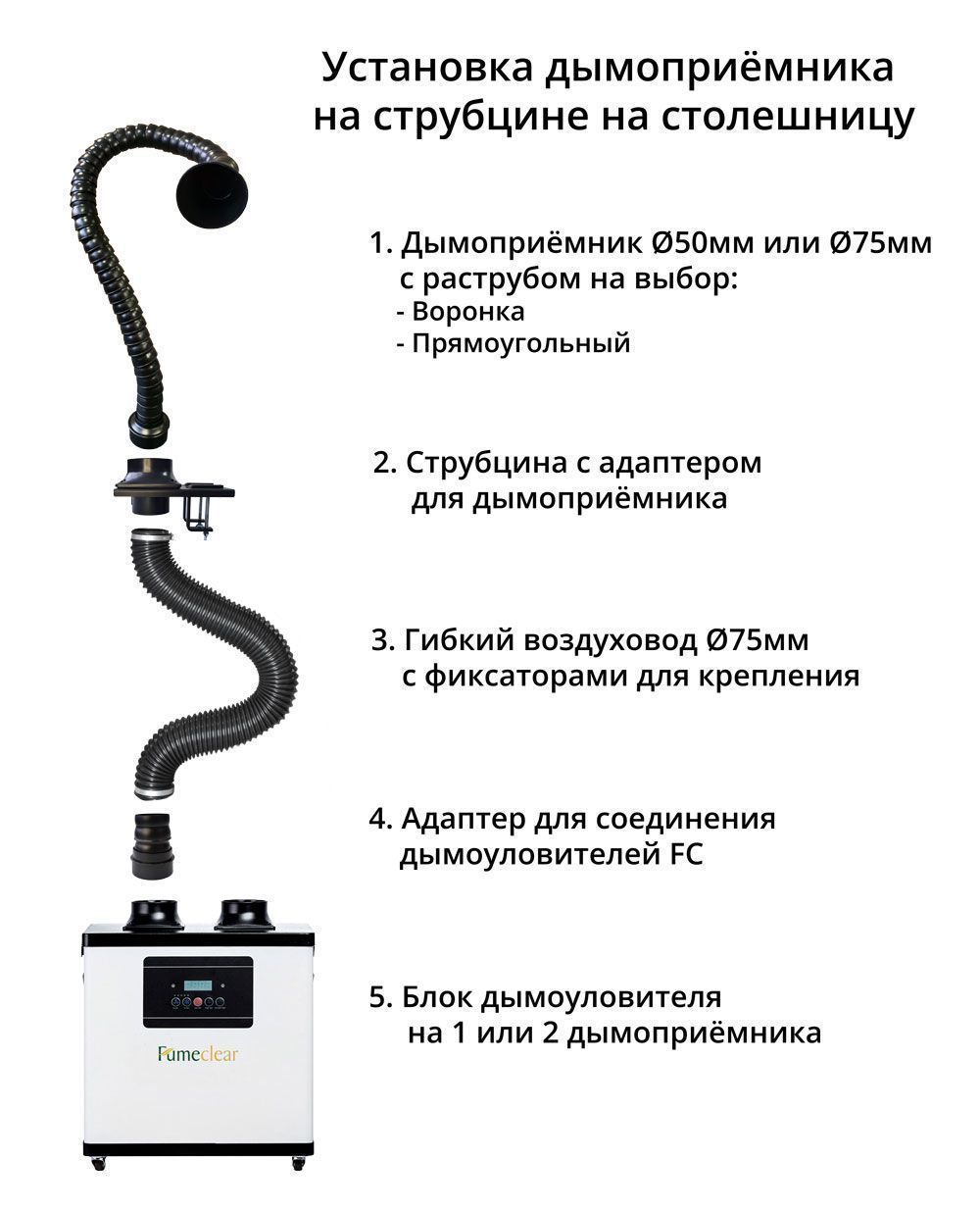 Универсальный дымоуловитель на 1 рабочее место FUMECLEAR FC-1001A.