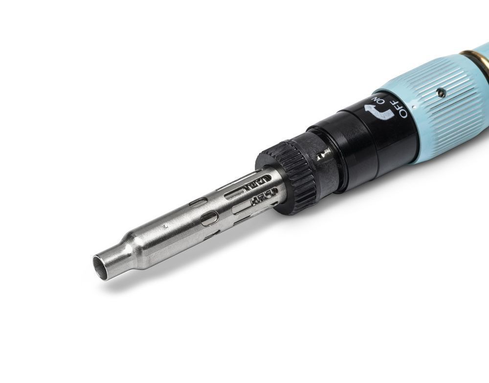Легкий газовый паяльник Weller, работающий от руки, с функцией пайки, горячего воздуха и паяльной горелки. Готов к работе за 30 секунд и позволяет выполнять пайку в любом месте без подключения к электросети или кабеля. В комплект входит алюминиевый защитный колпачок с зажимом для кармана и функцией безопасности, предотвращающей надевание колпачка при включенном паяльнике.
