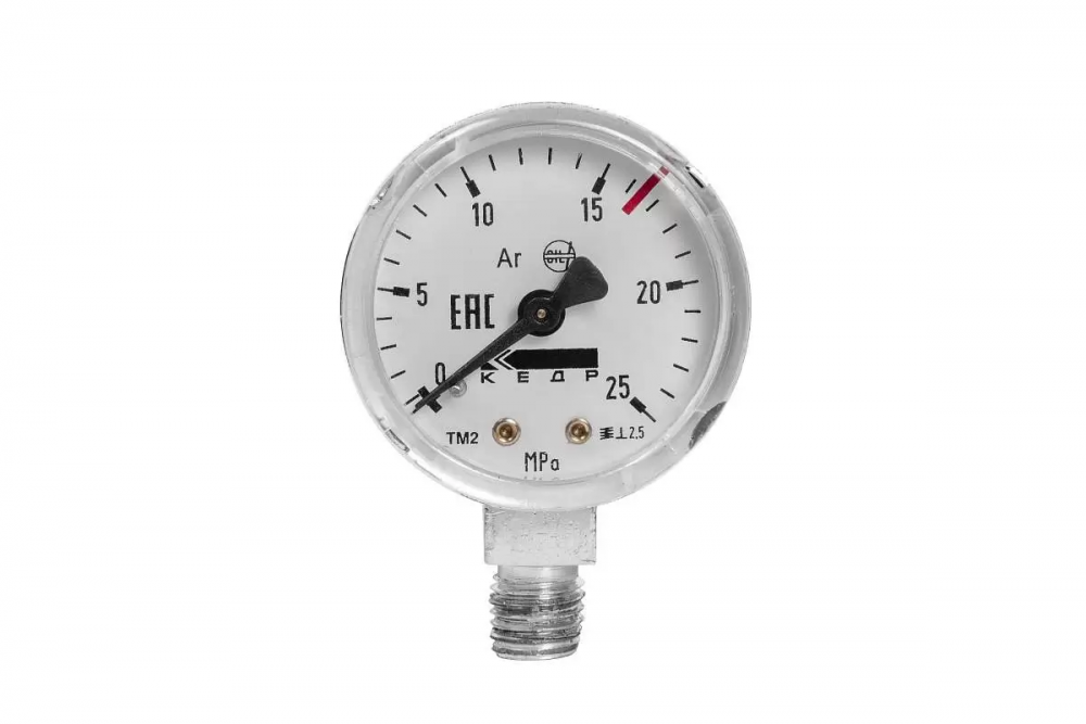 Манометр аргоновый ТМ2 (0-25МПа, кл.2,5, М12Х1,5) Ar-У предназначен для измерения давления в сварочных приборах.
